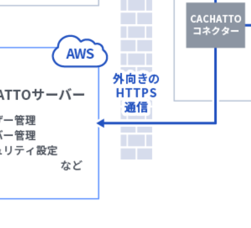 この「CACHATTOコネクター」は、お客様ネットワーク内に設置、脆弱性対策の更新は不要で、安全に運用いただけます。